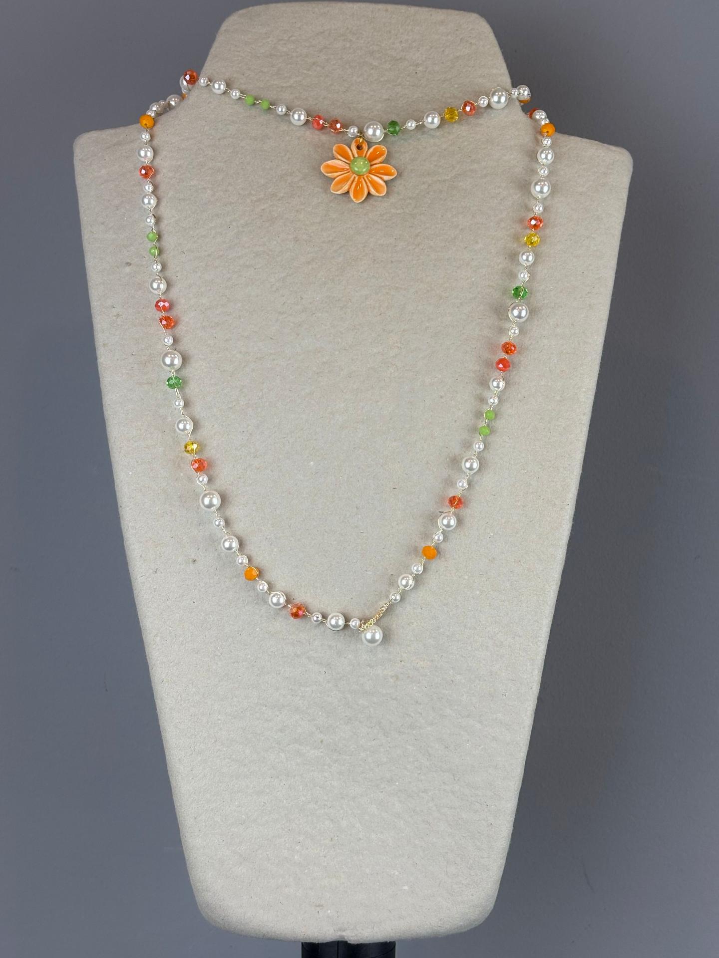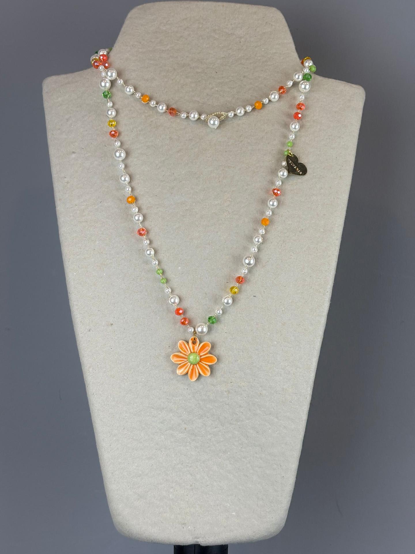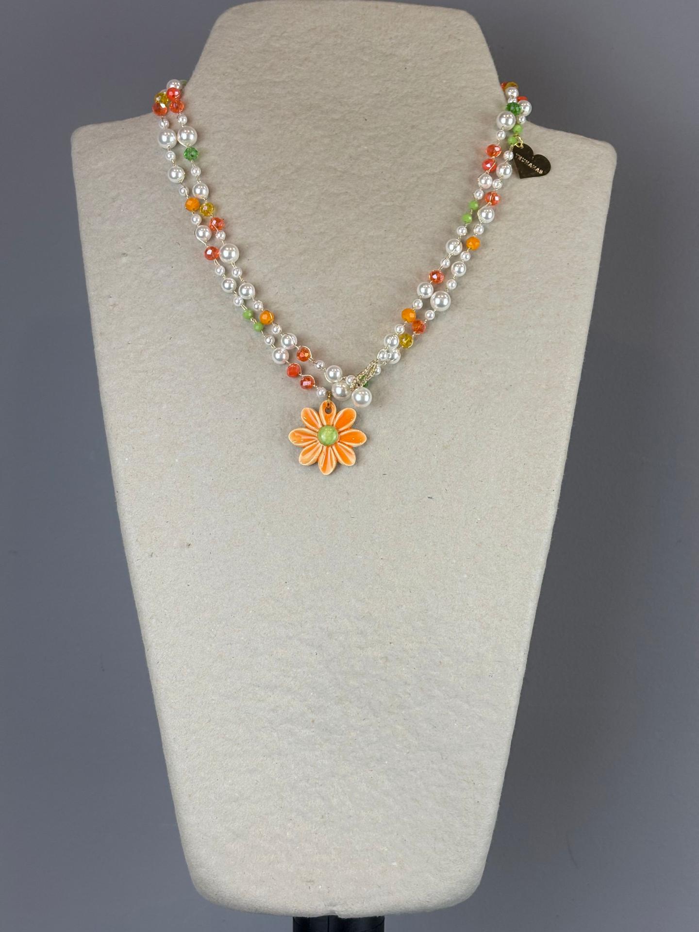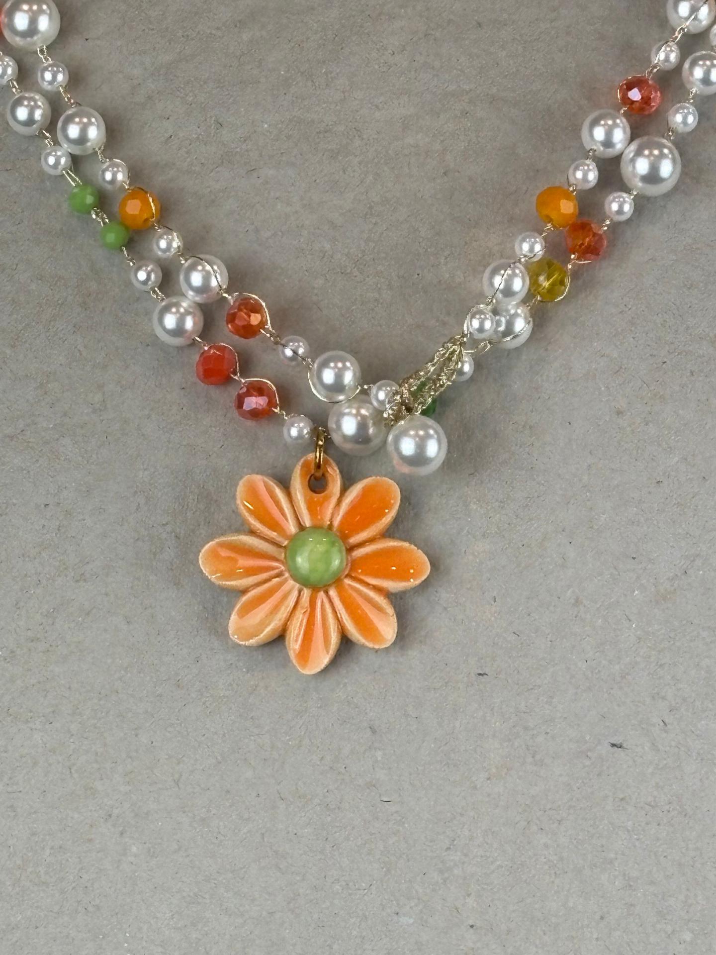 MARGARITA NARANJA, COLLAR LARGO CON FLOR DE CERÁMICA