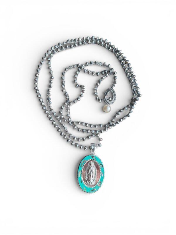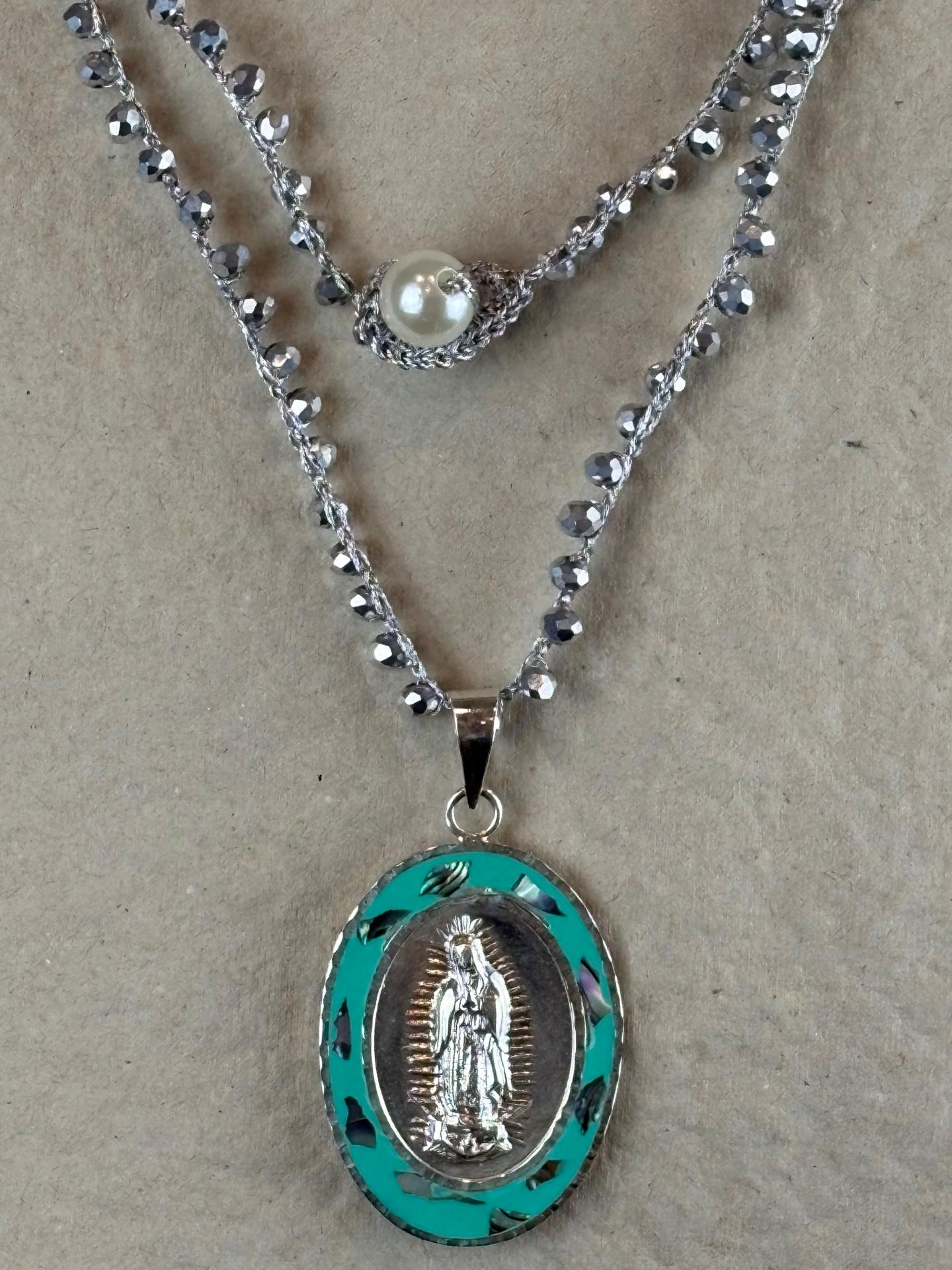 COLLAR MEDALLA VIRGEN DE GUADALUPE EN ALPACA CON CONCHA DE ABULÓN