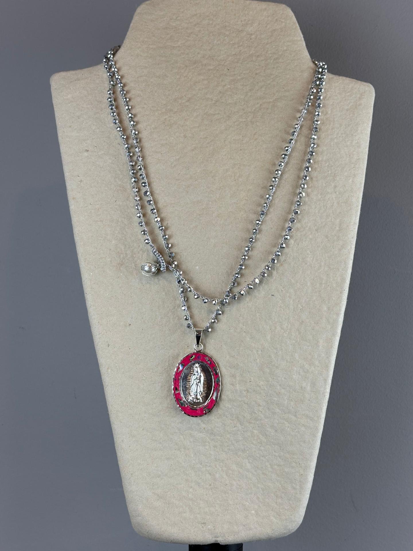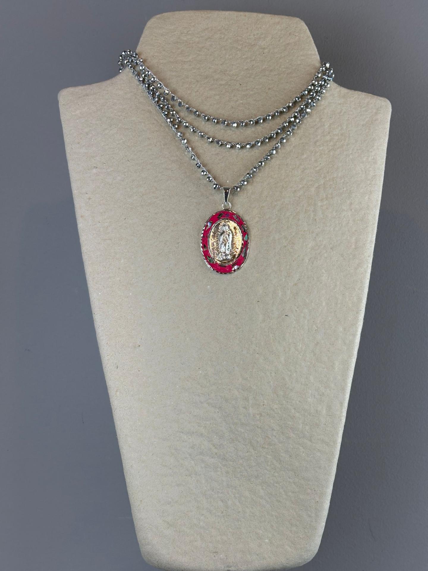 COLLAR MEDALLA VIRGEN DE GUADALUPE EN ALPACA CON CONCHA DE ABULÓN