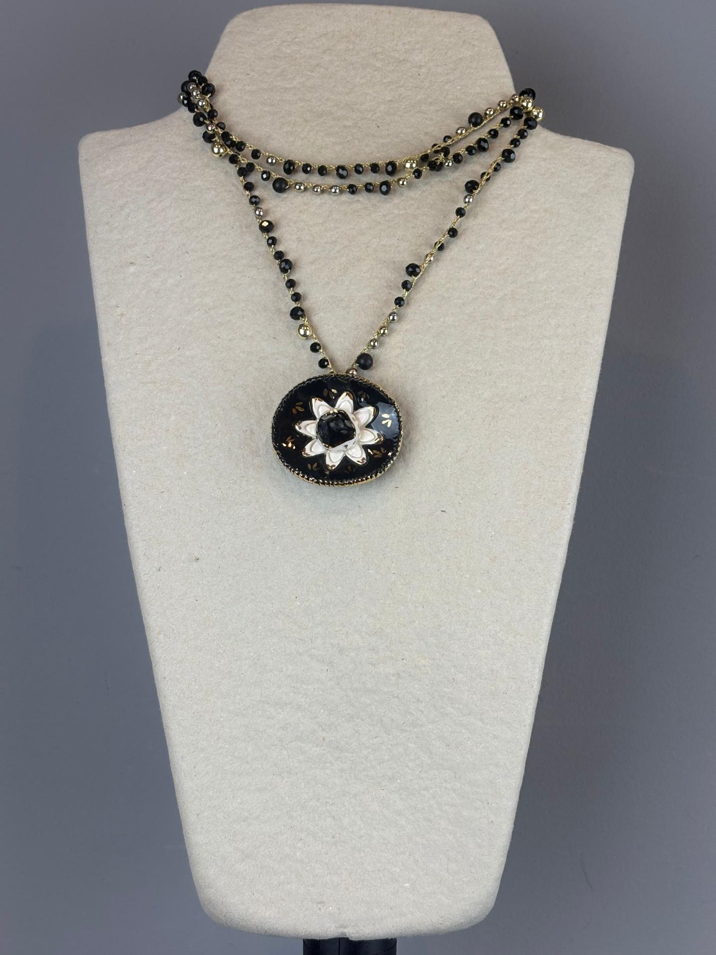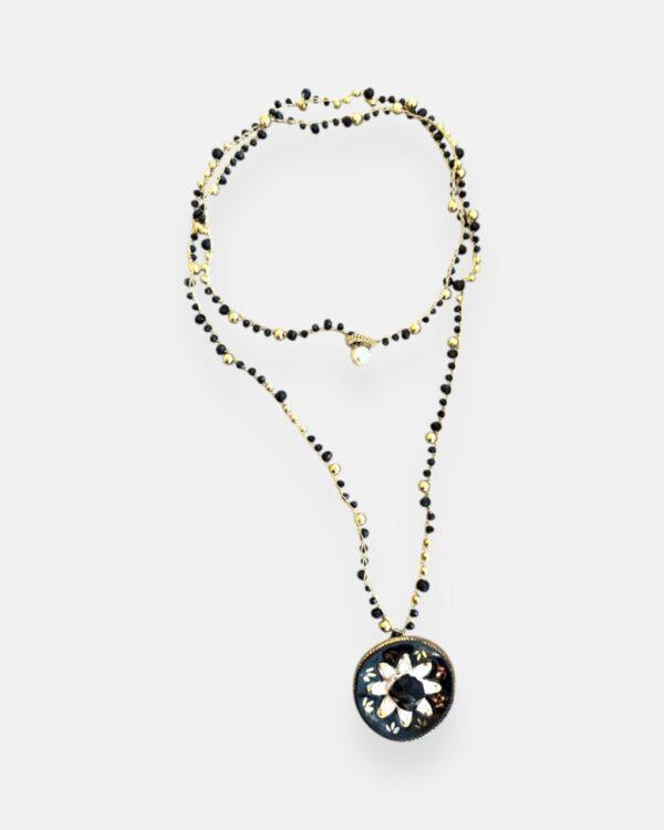 El collar Sombrero Mexicano es una pieza única y cargada de identidad. Hecho a mano en Italia, rinde homenaje al tradicional sombrero charro con un diseño que combina elegancia, artesanía y cultura. Cada trazo ha sido pintado a mano con una delicadeza que lo convierte en una verdadera obra de arte. El sombrero, sutil y detallado, es el centro de un collar largo tejido manualmente con cristales Swarovski en tonos negro y dorado. Versátil y llamativo, puedes llevarlo en una, dos o hasta tres vueltas para adaptarlo a tu estilo. ¿Quieres una combinación audaz y profundamente mexicana? Llévalo con nuestro Corazón Jarana y haz una declaración poderosa de orgullo y belleza.