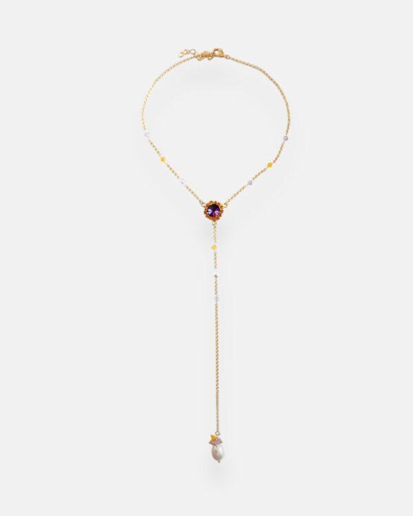 COLLAR MARCELLA MORADA, CADENA CON CRISTAL Y PERLA NATURAL