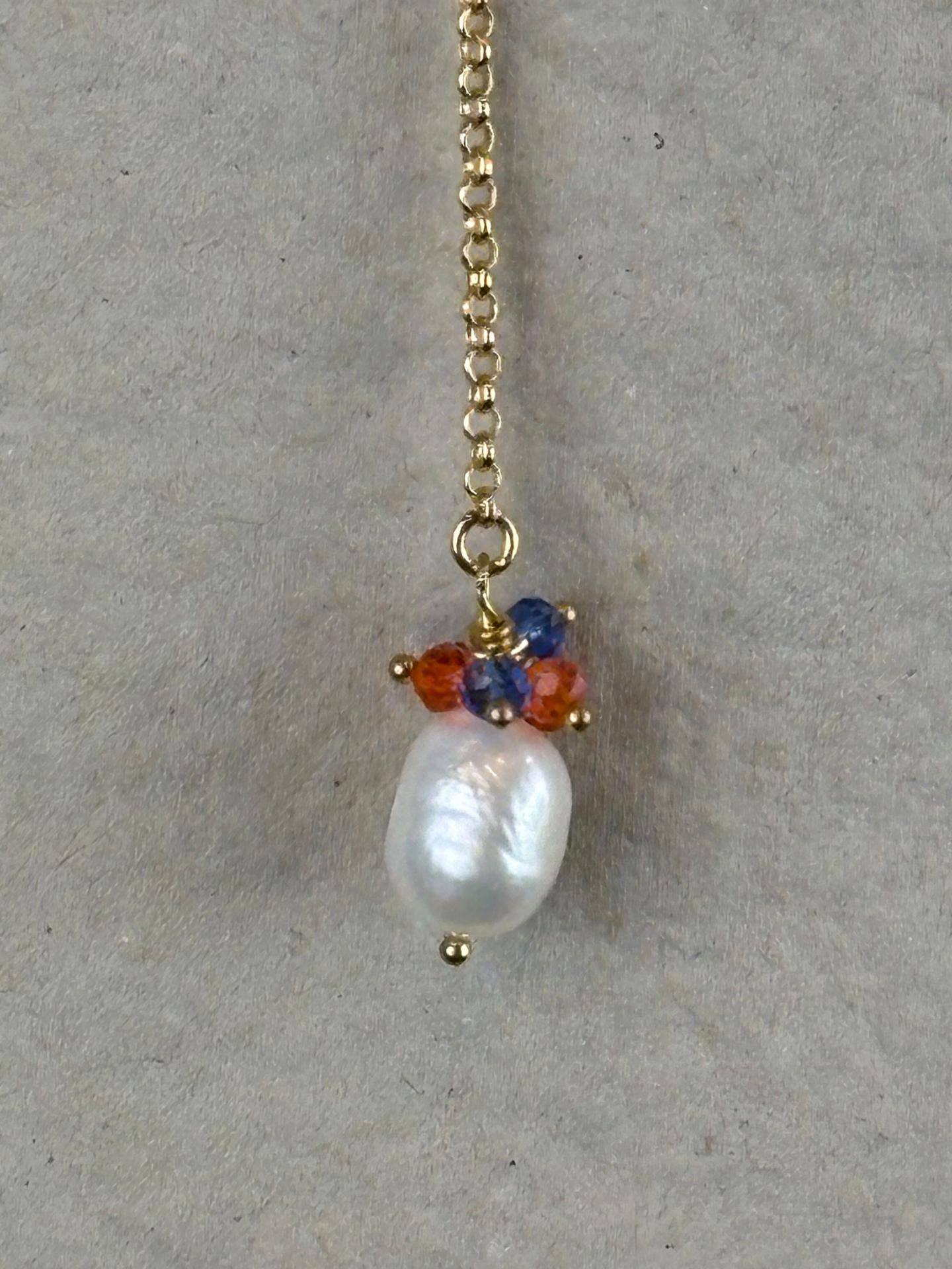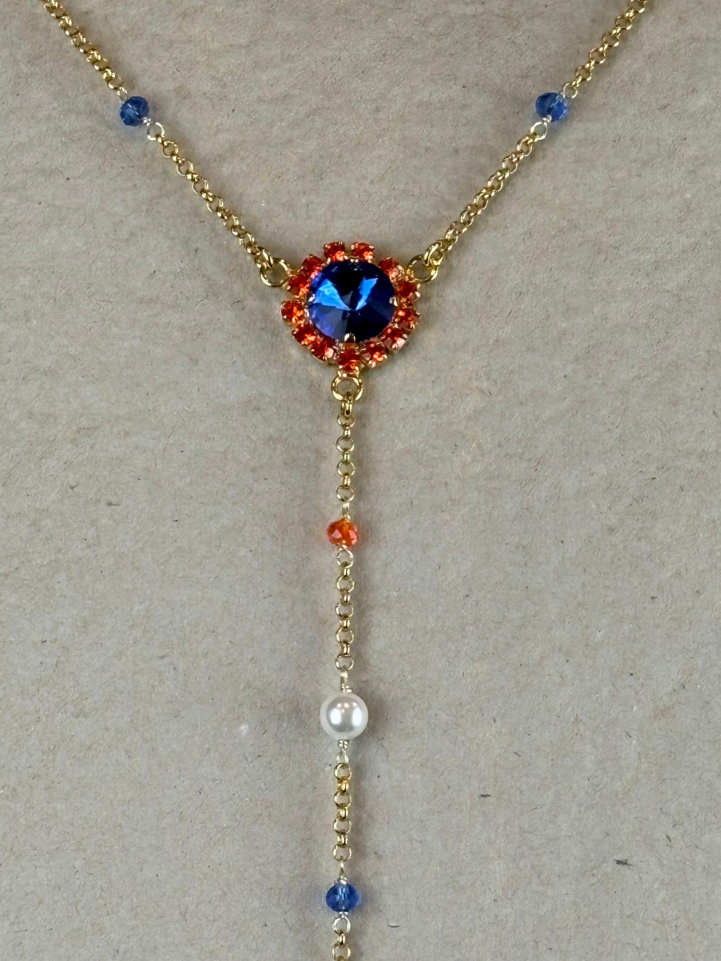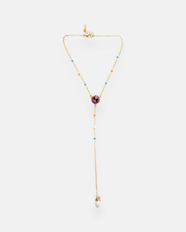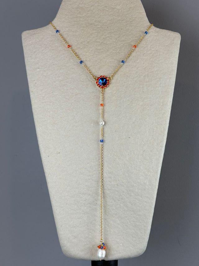 MARCELLA AZUL, CADENA CON CRISTAL Y PERLA NATURAL
