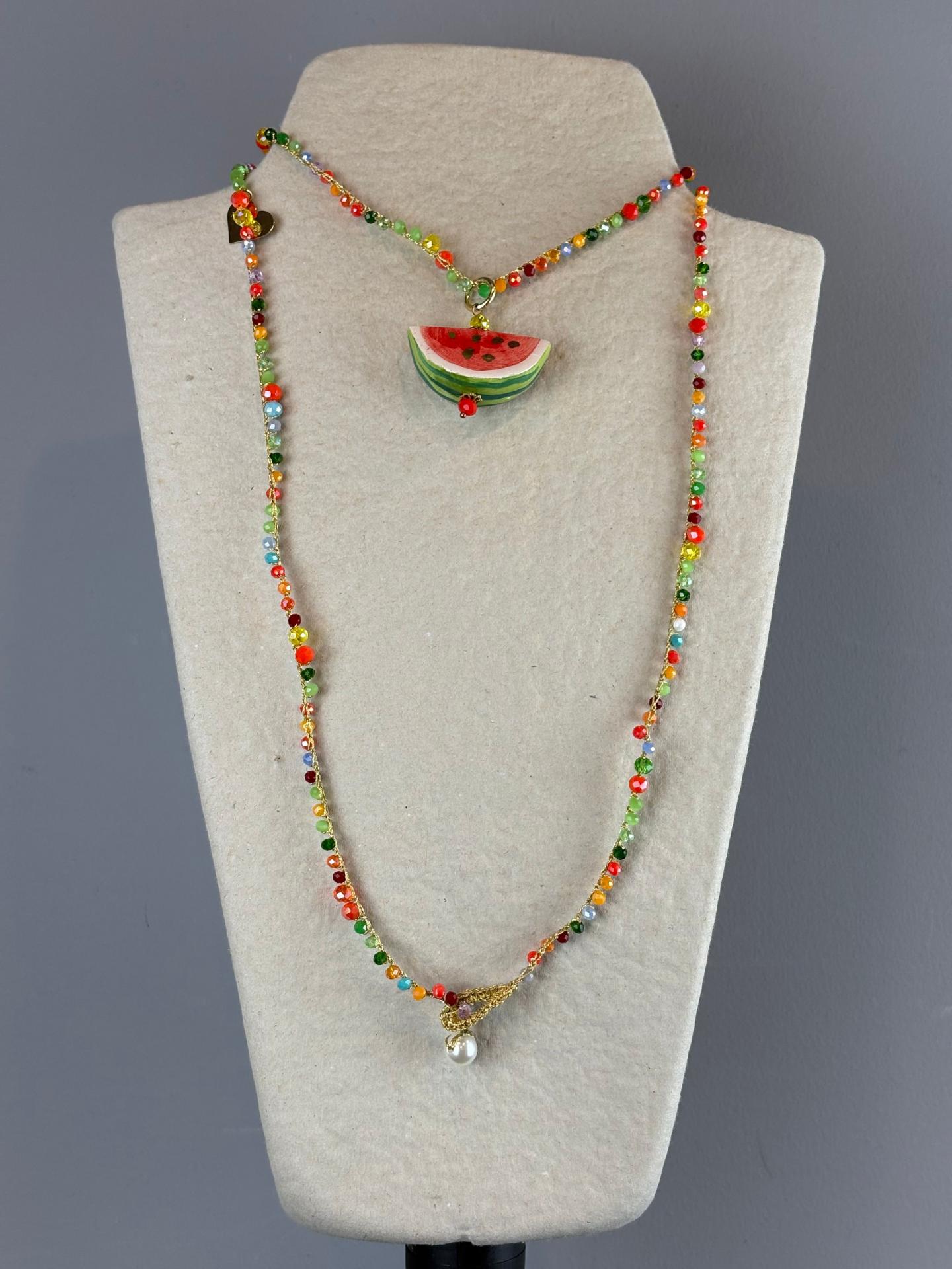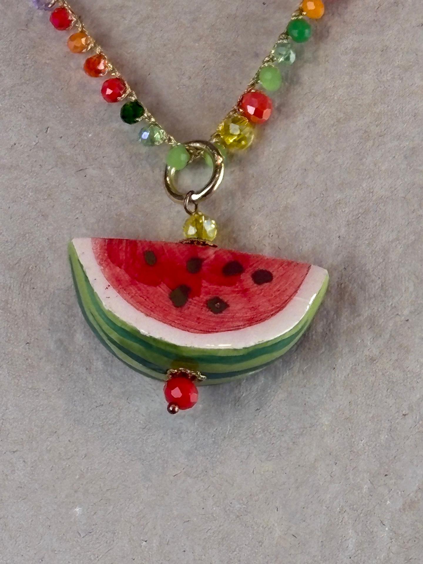 COLLAR SANDIA, COLLAR LARGO CON CERÁMICA DE SANDÍA