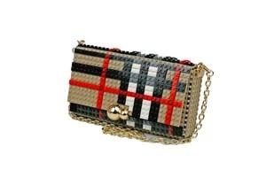 Dimensiones 25cm x 13cm x 6cm. Peso 370gr + 130gr la cadena metálica. Formado por 266 bloques de ABS ensamblados a mano. Incluye funda guardapolvo de algodón, bolsillo interior y cadena metálica de quita y pon de 105 cm de longitud.