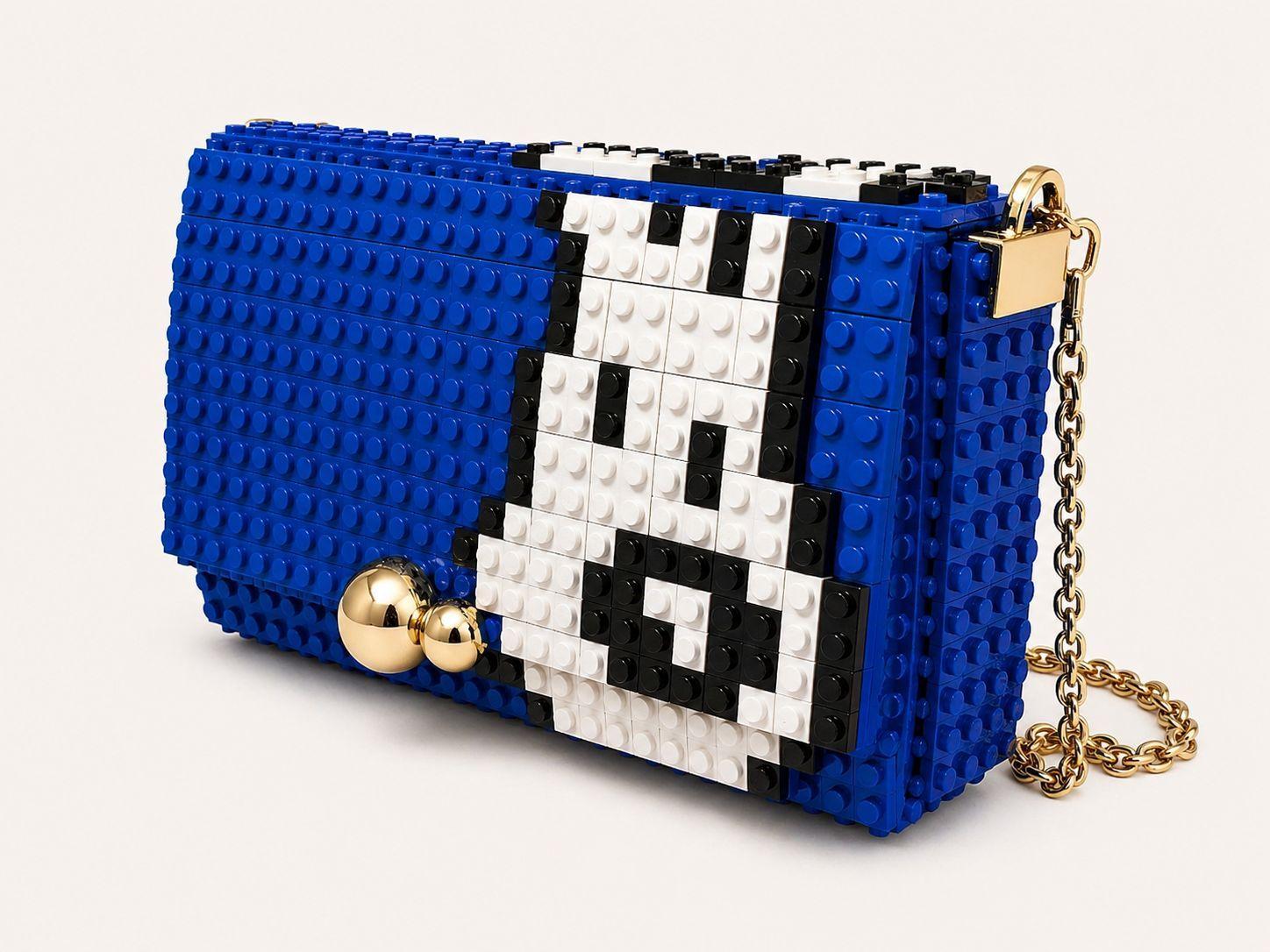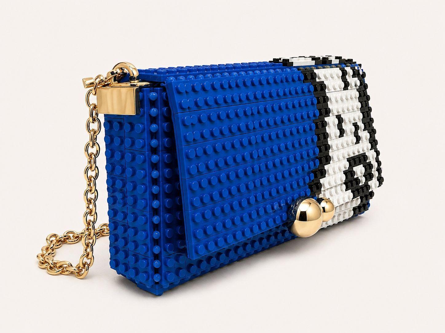Dimensiones 25cm x 13cm x 6cm. Peso 370gr + 130gr la cadena metálica. Formado por 266 bloques de ABS ensamblados a mano. Incluye funda guardapolvo de algodón, bolsillo interior y cadena metálica de quita y pon de 105 cm de longitud.