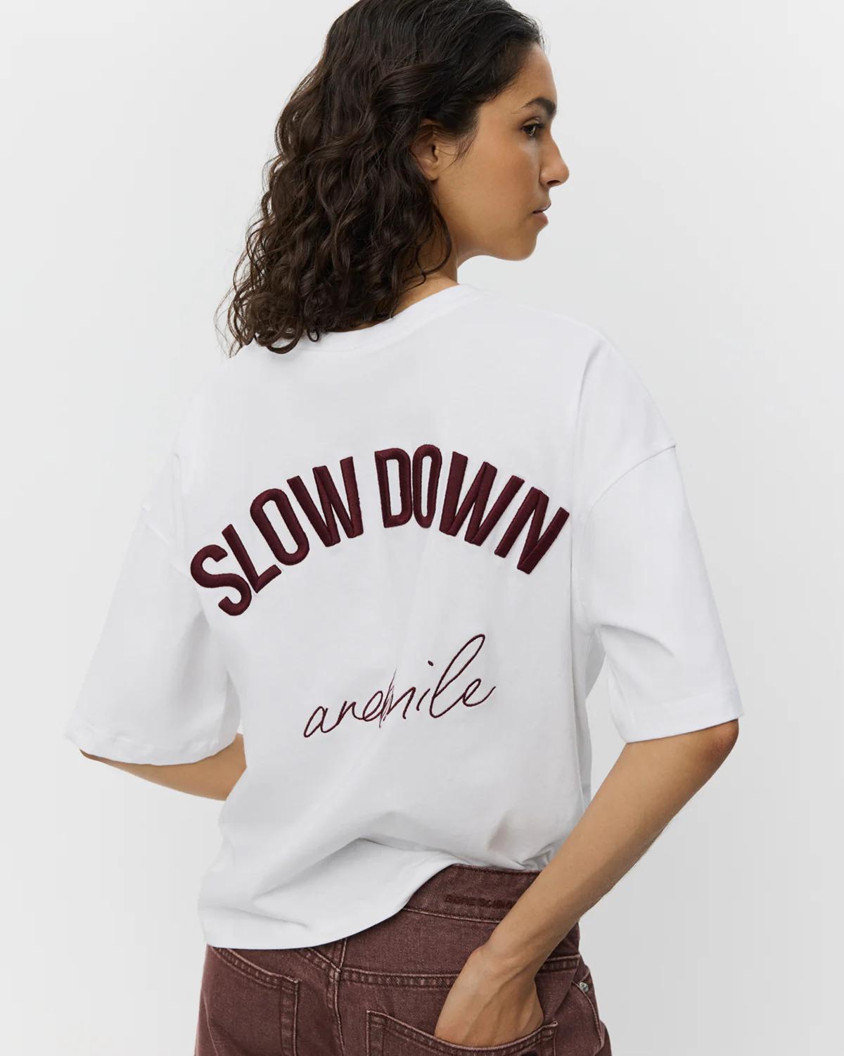 • Parte trasera: Bordado con el texto "slow down and smile"