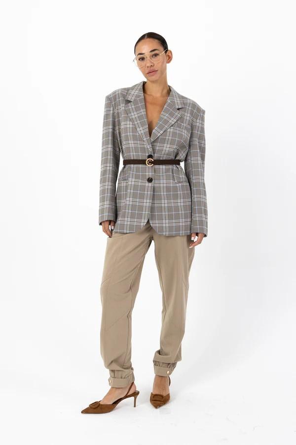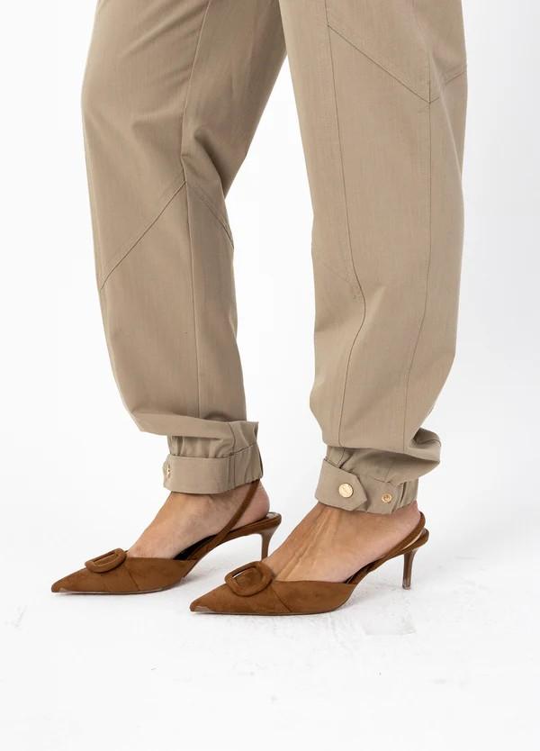- Elástico y tirantes con botones a presión en los tobillos