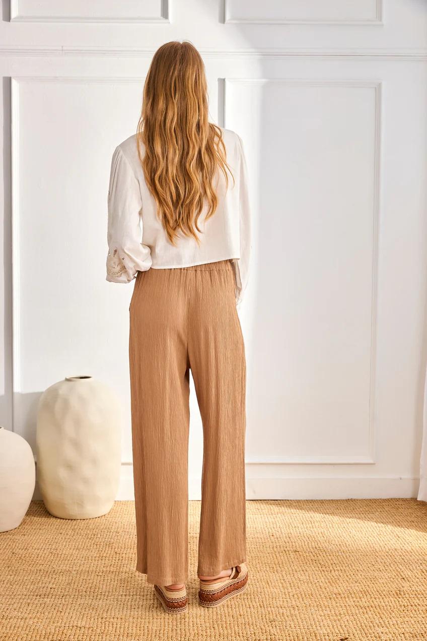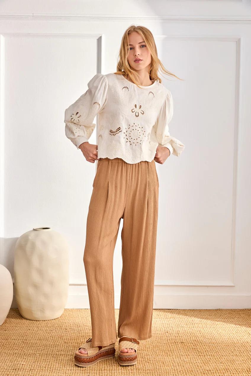Blusa con lino de manga larga con cuello redondo.